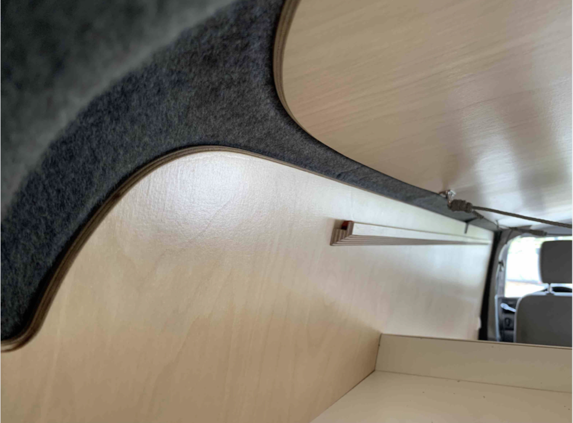 Nous réalisons la pose d’isolation et d’habillage pour un confort thermique et acoustique optimal. L’isolation type Armaflex couvre la cabine arrière complète, complétée par un habillage bois en bouleau vitrifié et de la feutrine sur les parties tôlées. L’objectif : garder votre van chaleureux et agréable, en toutes saisons.
